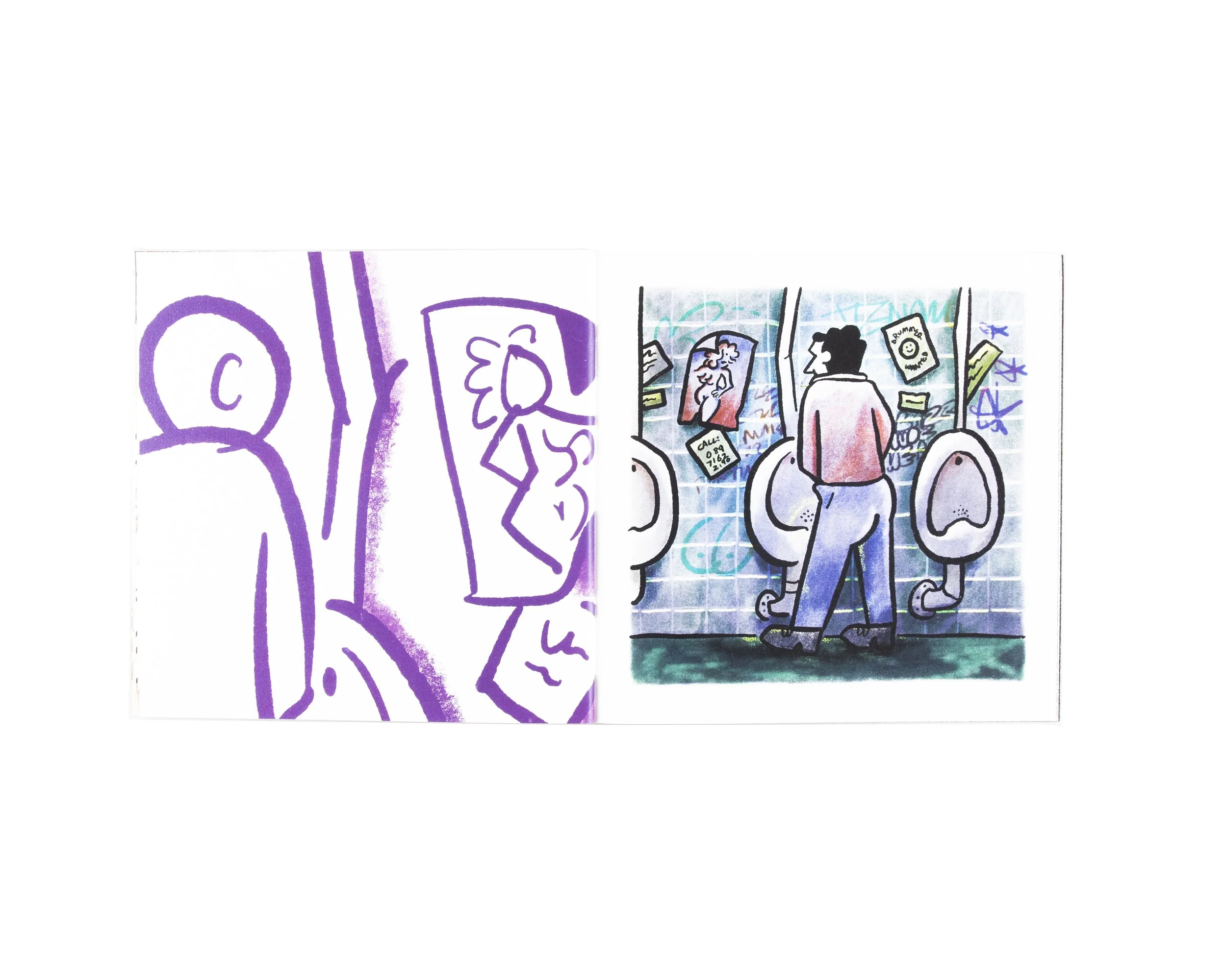 Currie's illustrations mine the everyday for its quiet humiliations and surreal detours. Technology, masculinity, therapy-speak, flatshares, phones, pubs, and existential dread all take turns on the page. These are images that are both self-effacing and emotionally exacting.